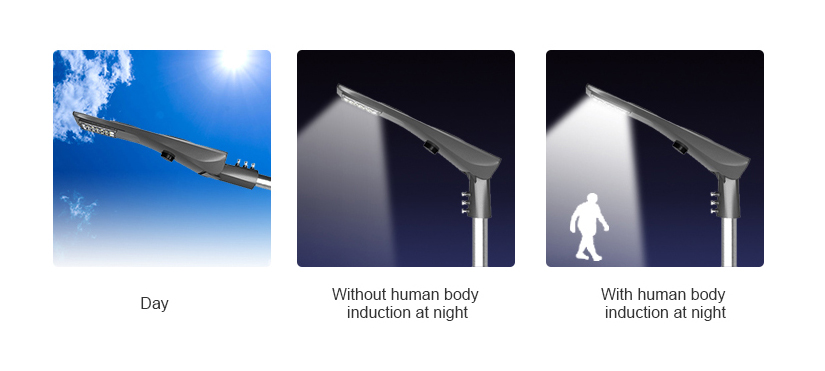 單晶硅太陽能電池板,LED燈,鋰電池,智能控制器集成在一起。